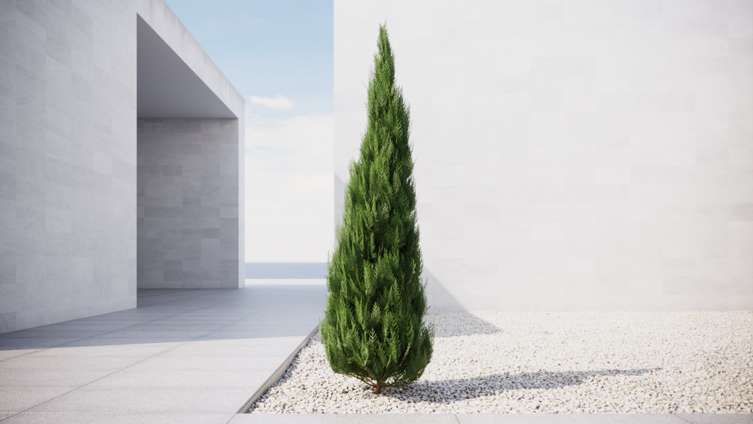 Natural-looking tall Thuja tree. Prepared for Architectural visualizations and other 3D works.
